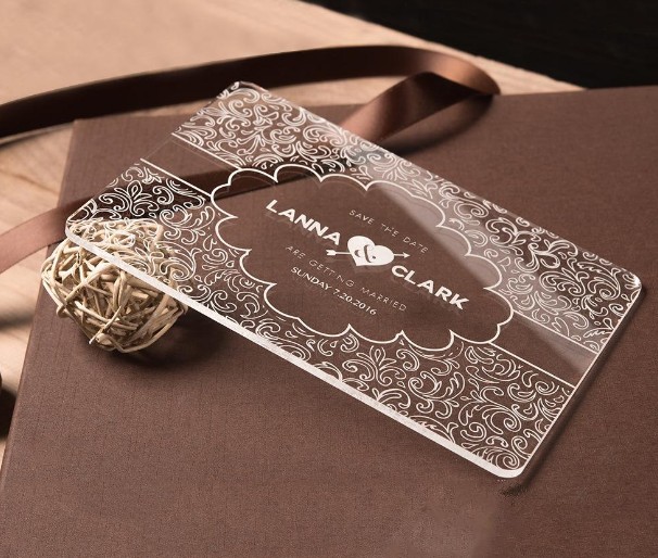近年來(lái),婚宴請(qǐng)柬一度從紙質(zhì)過(guò)度到木質(zhì),再升級(jí)到亞克力。糅合激光雕刻技術(shù)魅力的亞克力請(qǐng)柬,通透簡(jiǎn)約、潔白無(wú)瑕,正好與當(dāng)代婚禮格調(diào)相吻合。